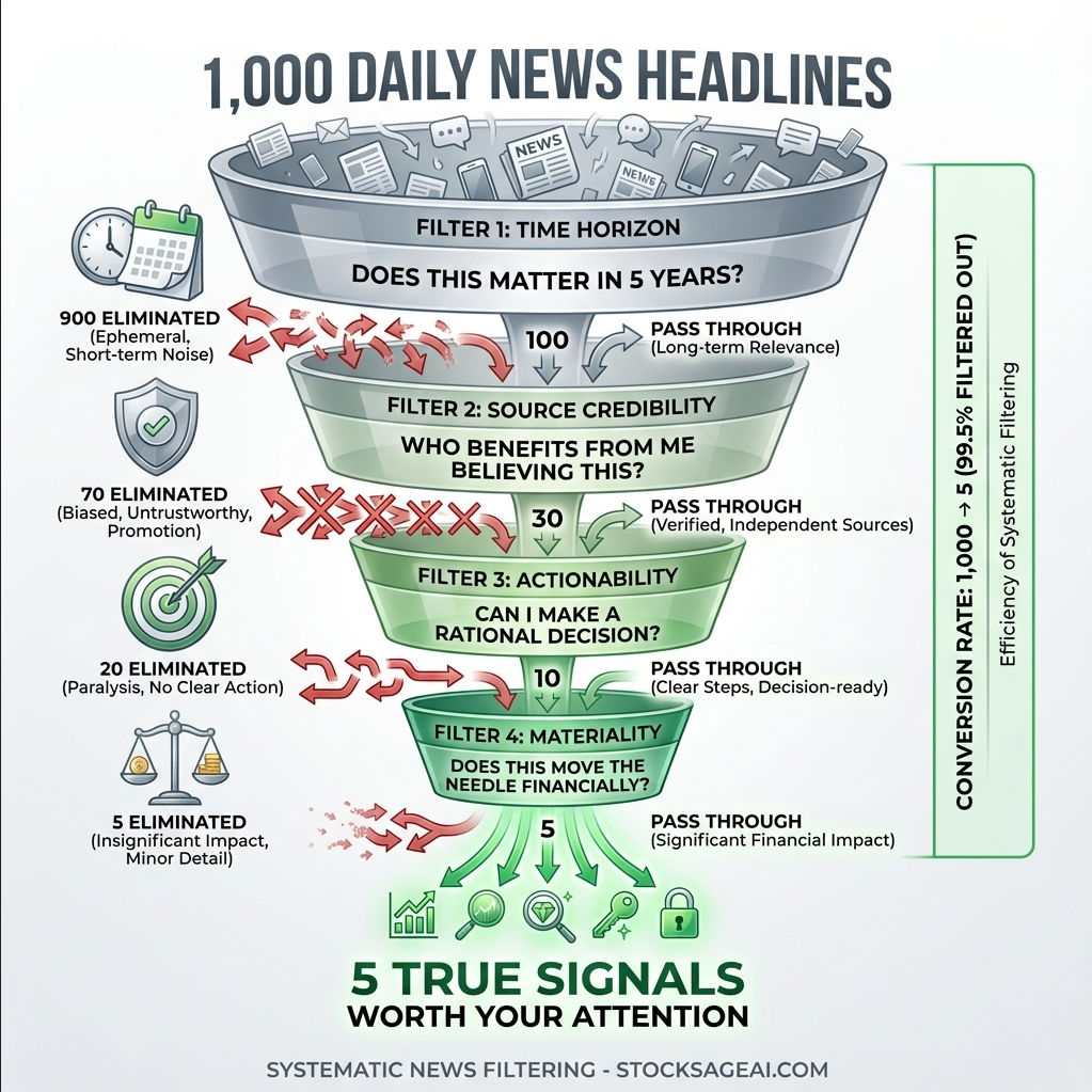 99% of market news is noise. Learn the 4-filter system professional investors use to identify the 1% of news that actually moves stock prices and creates opportunities.